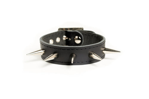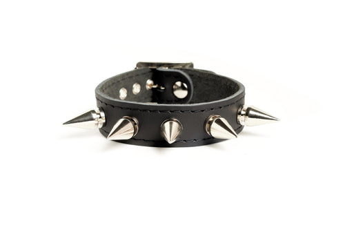 Bracelet de cuir noir clouté.